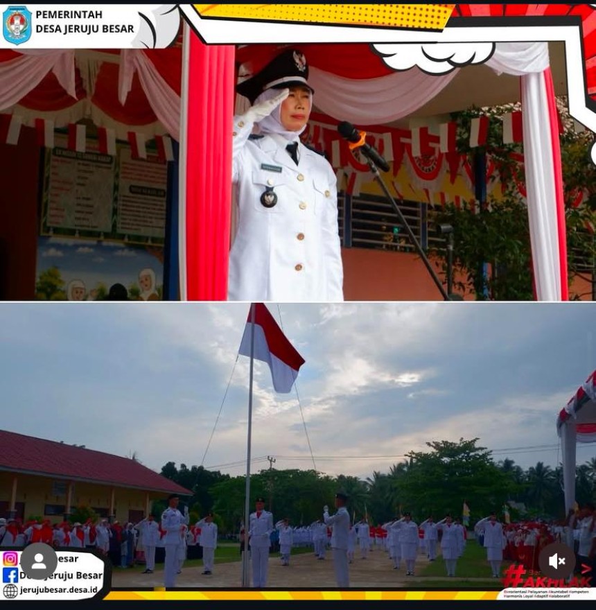 Dengan penuh khidmat, upacara penurunan bendera Merah Putih telah dilaksanakan pada sore hari ini, menandai akhir dari rangkaian peringatan Hari Ulang Tahun ke-80 Kemerdekaan Republik Indonesia di Desa Jeruju Besar.